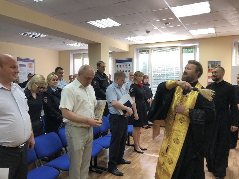 Благословляя правоохранителей на службу Отечеству, иерей Дионисий освятил здание отдела МВД, кабинеты и служебные автомобили сотрудников.
