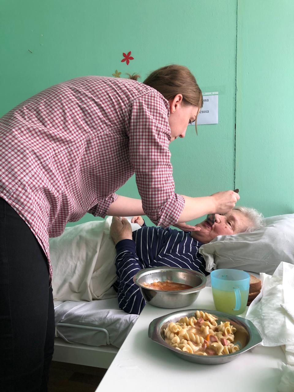 Утром 13 сентября были загружены всем необходимым 5 машин, пекарня храма напекла в дорогу пирожков, и наши прихожане вместе с настоятелем и священником Даниилом Сироткиным отправились в поездку. Через 3 часа мы были на месте, разгрузили вещи, мужчины начали сборку прикроватных столиков и установку нового бойлера, женщины занялись обустройством палат, прогулками с пациентами, многие из которых несколько лет не имели возможности выйти на улицу, подготовкой обеда и ужина. Ближе к вечеру для пациентов был устроен концерт, под гитару было спето много известных песен, в том числе и по заказу слушателей. К лежачим пациентам певчие пришли сами.
