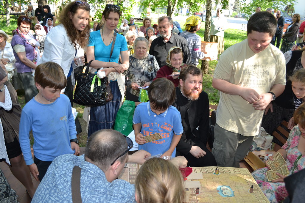 После обсуждения один из приглашенных гостей иеромонах Димитрий Першин представил детскую настольную игру «Монастыри». Во время демонстрации дети так увлеклись, что их родителям пришлось отложить свои взрослые разговоры и присоединиться к своим чадам. Впрочем родителям игра показалась не менее интересной, и многие ушли домой с новым приобретением.