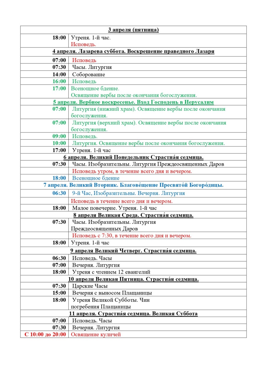 Храм Преподобного Сергия Радонежского в Солнцево Анонсы, НОВОСТИ Расписание богослужений с 3 по 11 апреля Расписание богослужений с 3 по 11 апреля Дорогие прихожане, прилагаем расписание богослужений и исповеди с 3 по 11 апреля, а также дни и часы освящения вербы и куличей. Поделиться:Отправить ссылку в ВКонтакте (Opens in new window)Click to share on Telegram (Opens in new window)Нажмите, чтобы распечатать (Opens in new window) версия для печати
