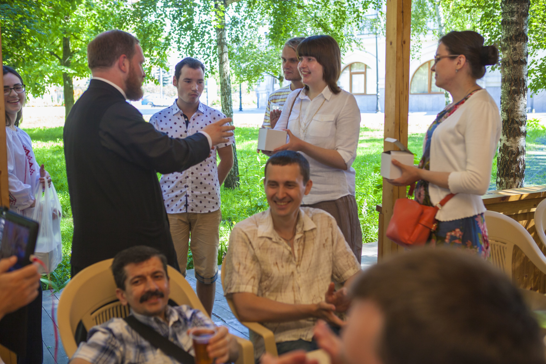 По благословению настоятеля иерея Александра Волкова сегодня, накануне престольного праздника, в нашем храме состоялась городская игра-квест «Солнце русской истории». Игра проходила на территории центральной части района Солнцево и храма преподобного Сергия Радонежского. Тема игры – православная культура, житие преподобного Сергия Радонежского, история России в целом и московского района Солнцево в частности. В игре приняли участие шесть команд — примерно тридцать человек из молодежи нашего и соседних храмов. После игры состоялось подведение итогов квеста. Первое место заняла команда «Руднинцы», ее представителям были вручены книги свт. прп. Паисия Святогорца, второе и третье места заняли команды «Маковец» и «Друзья Солнца» соответственно, им были подарены кружки. После награждения все приняли участие в чаепитии.