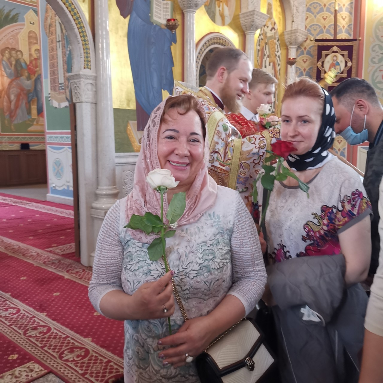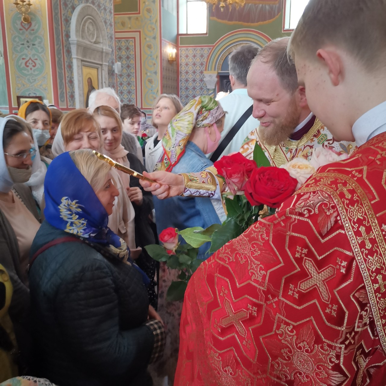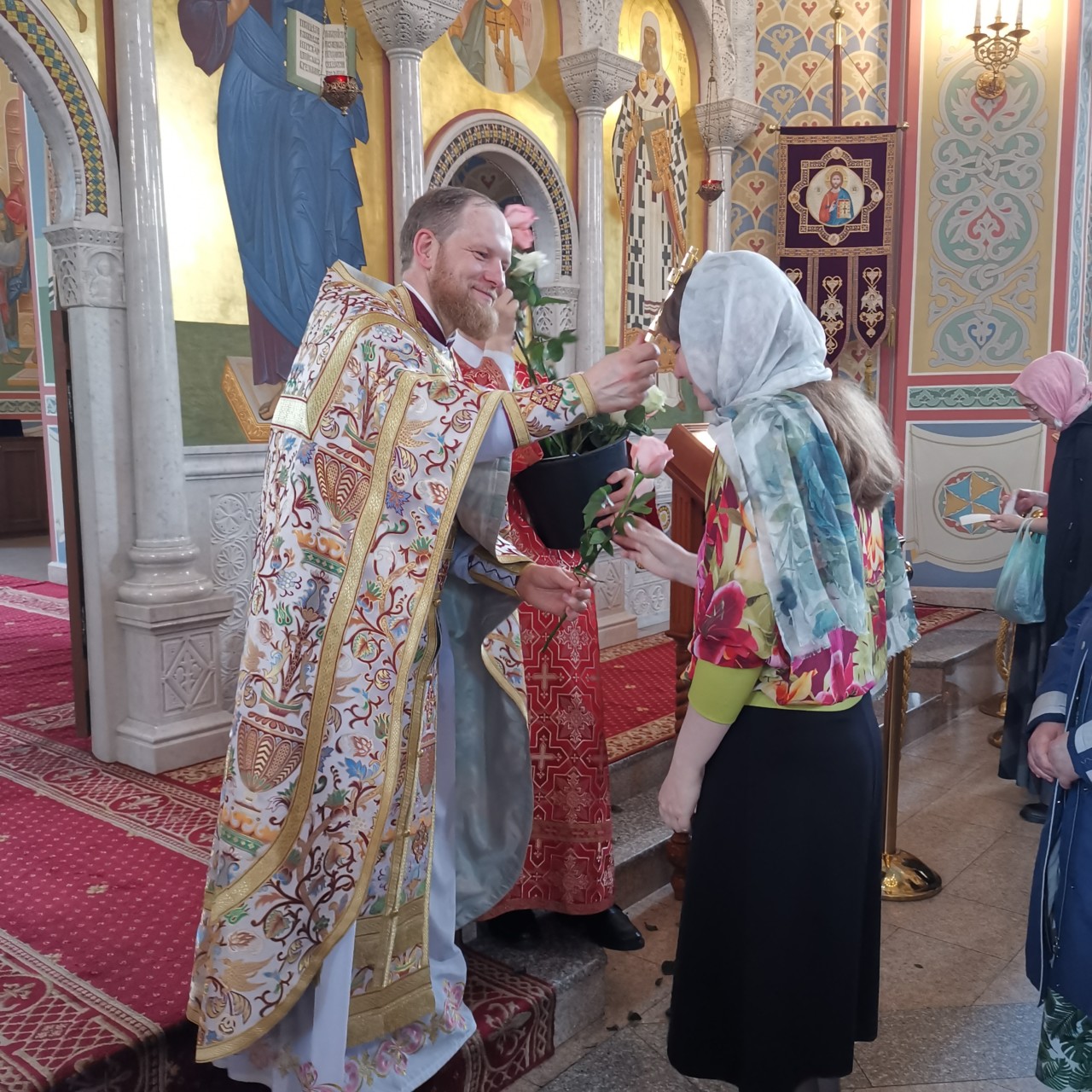 Сегодня в нашем храме после ранней и поздней Литургии о.Николай Головинов и о.Александр Волков поздравили наших дорогих женщин с праздником, и каждая унесла с собой розу в напоминание о своем Божественном предназначении.