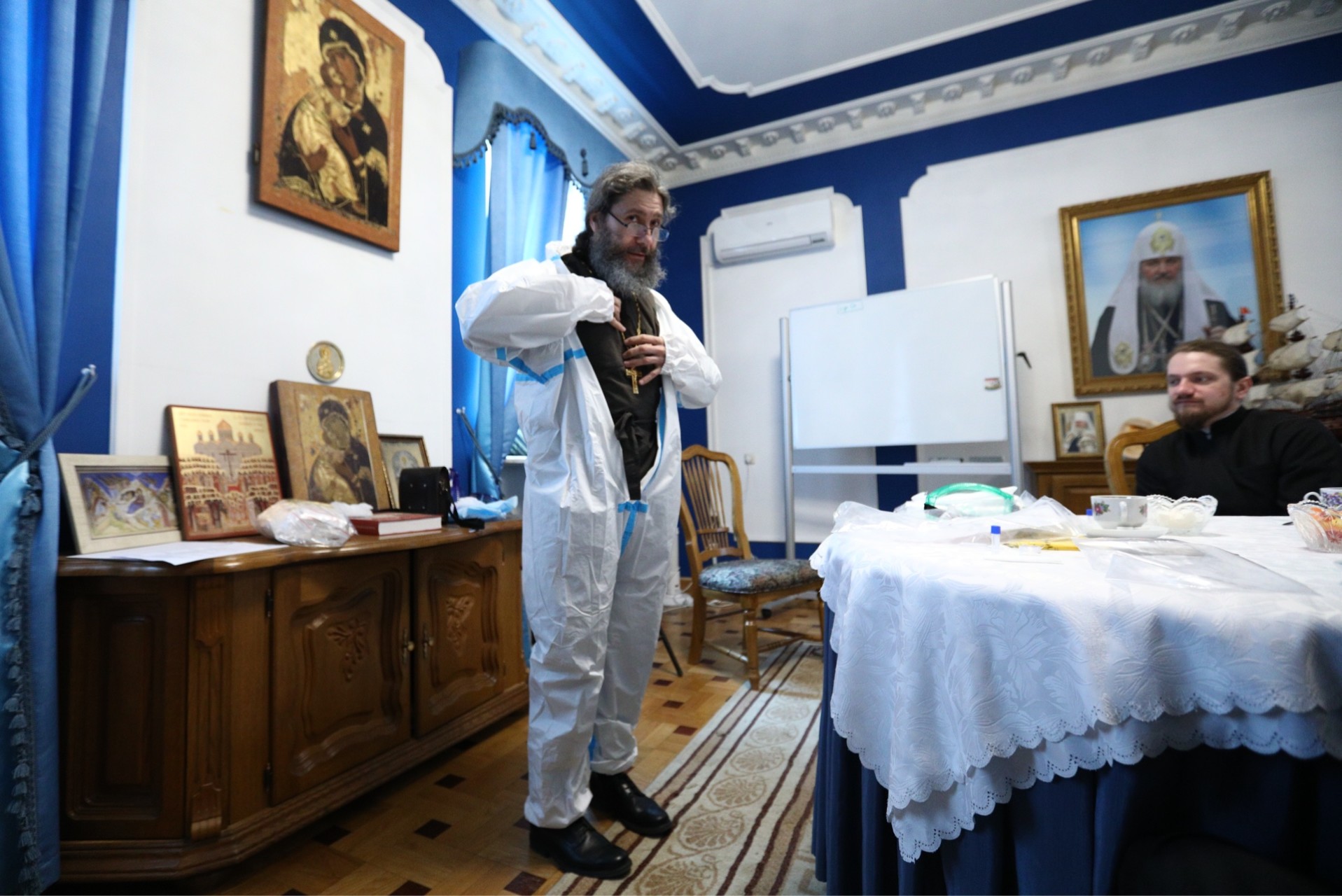 На семинаре рассматривались вопросы больничного служения в ковидных отделениях, обсуждались различные аспекты окормления больных коронавирусной инфекцией в стационаре и в домашних условиях. Были продемонстрированы средства индивидуальной защиты для посещения больных в красных зонах.