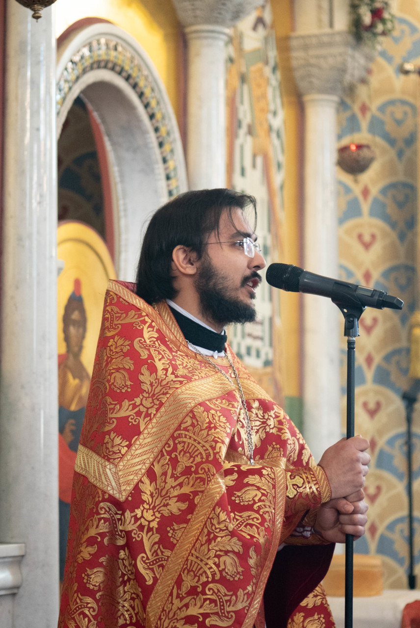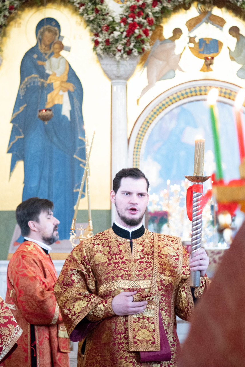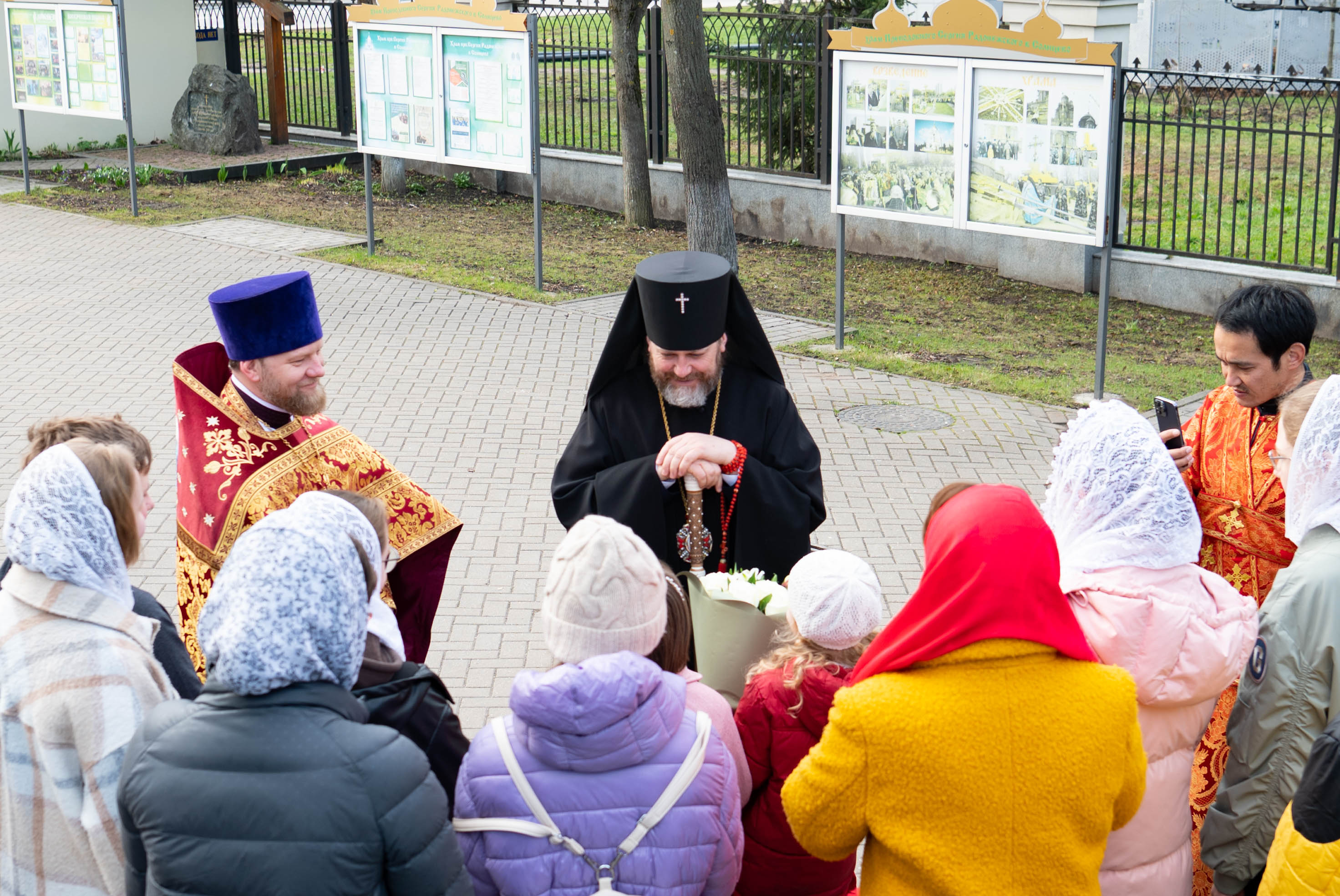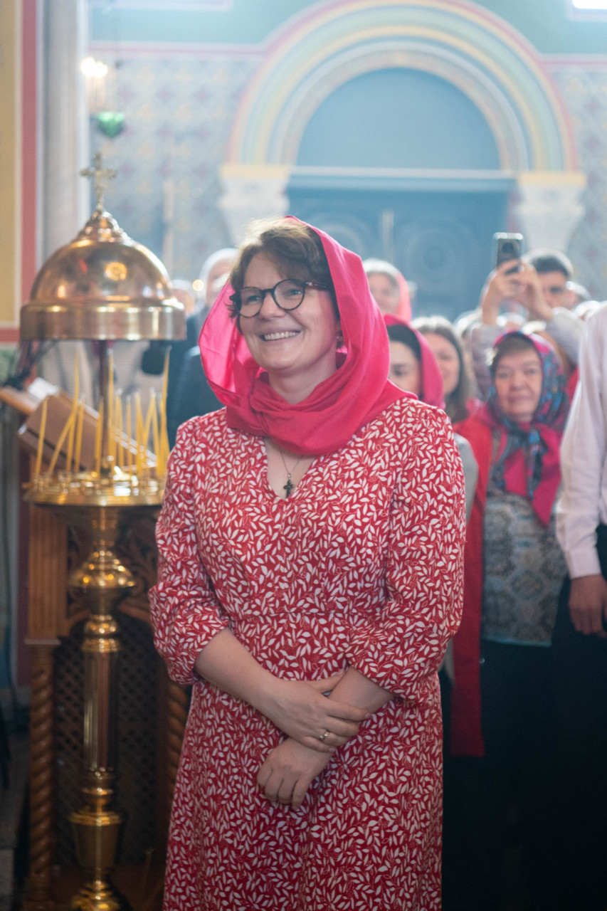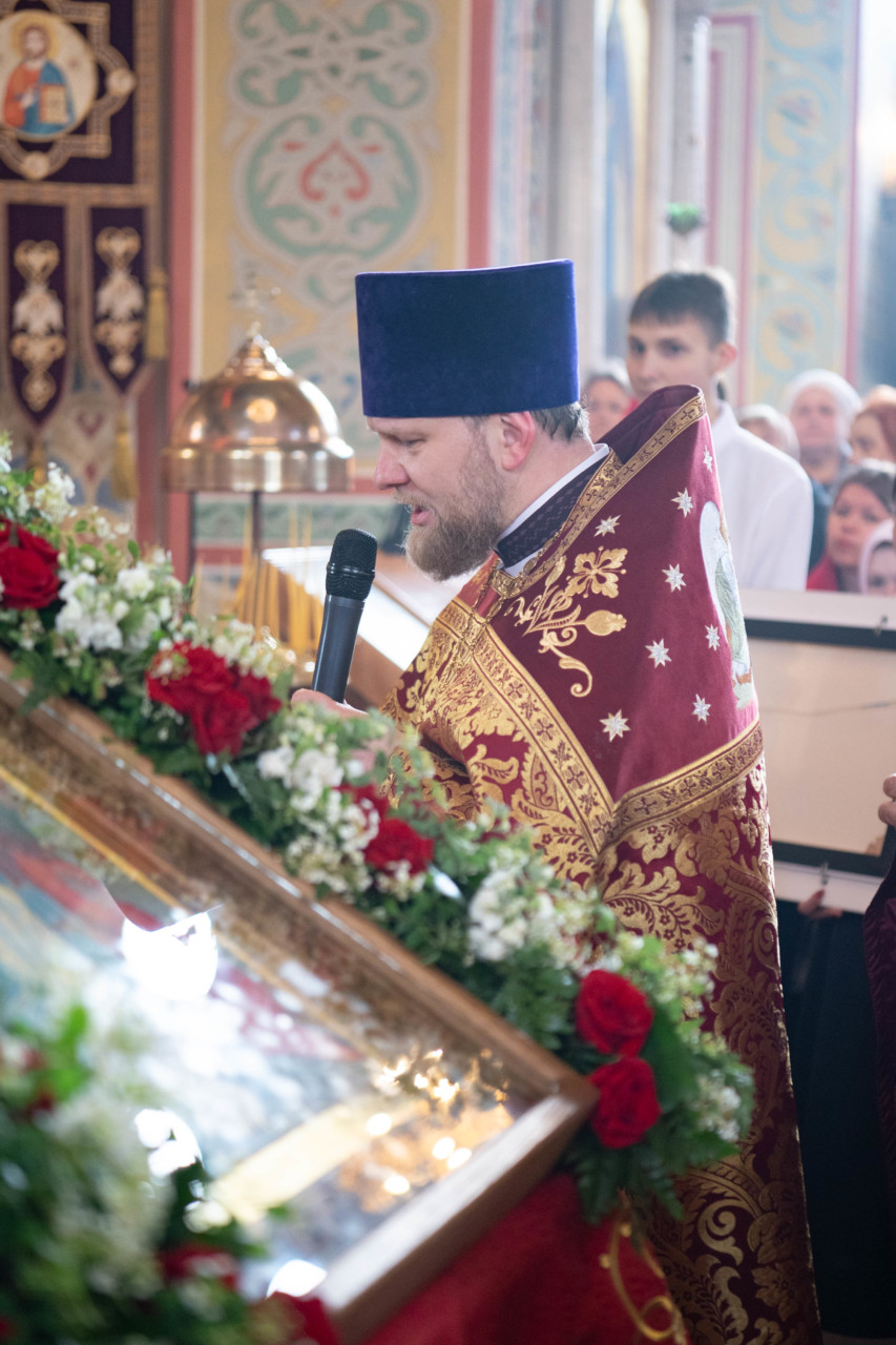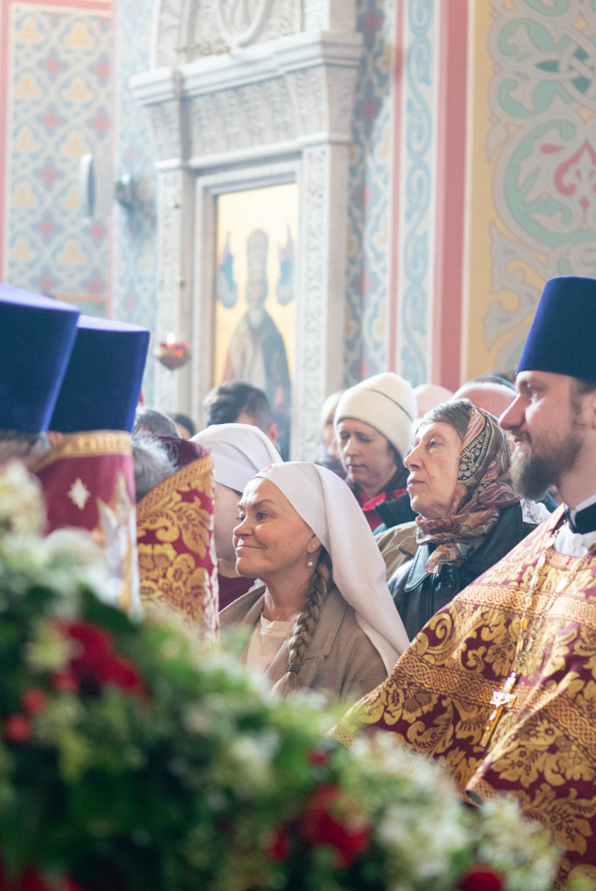 У входа в храм архиепископа Фому встречали настоятель иерей Александр Волков, а также учащиеся гимназии «Отрок Варфоломей» и церковной хоровой школы «Вертоград». Богослужебные песнопения исполнил хор «Артос» под управлением В. Волковой.