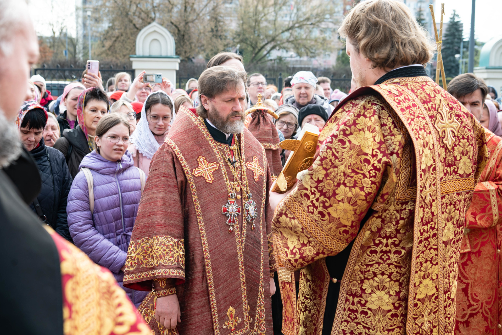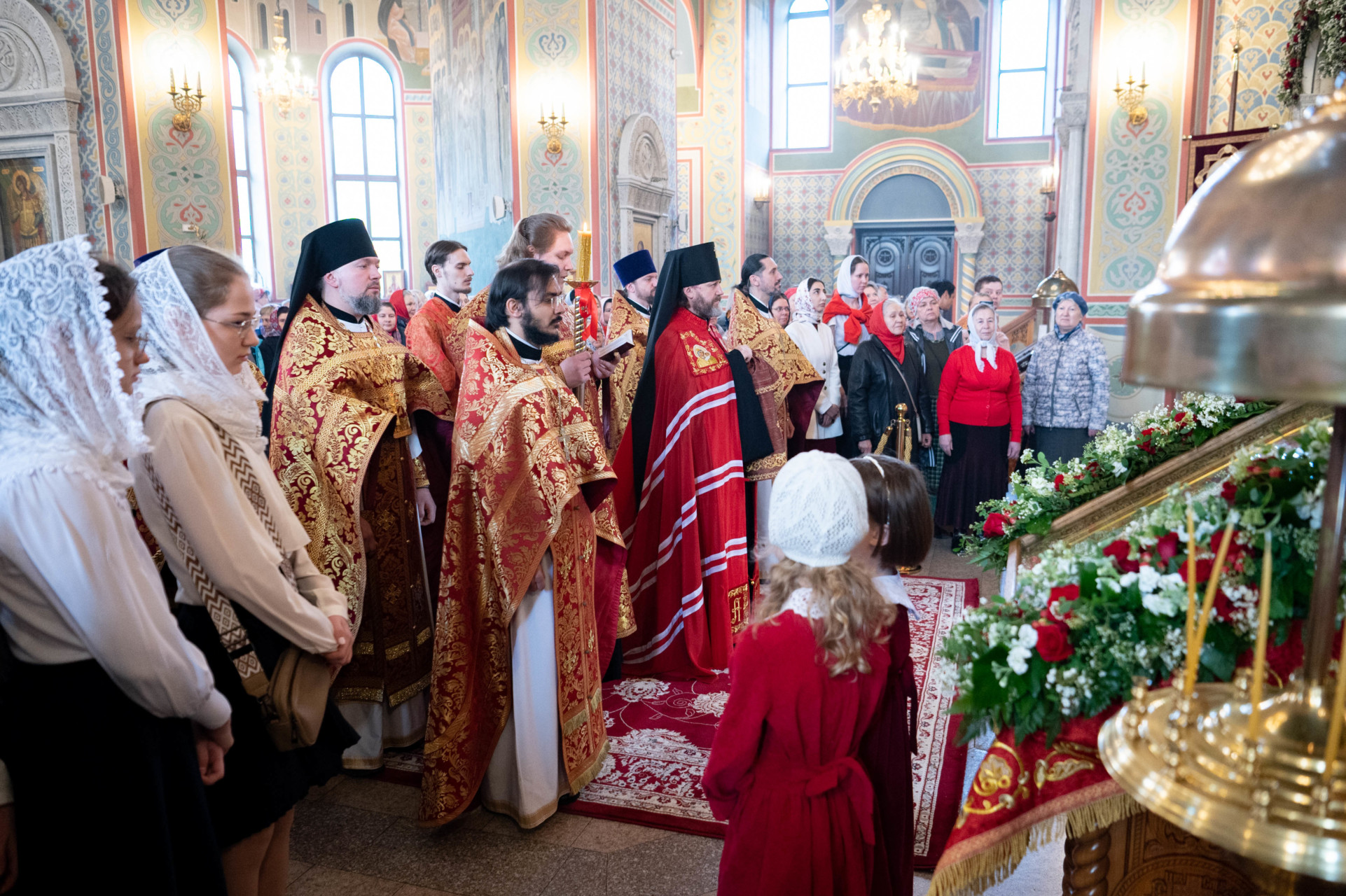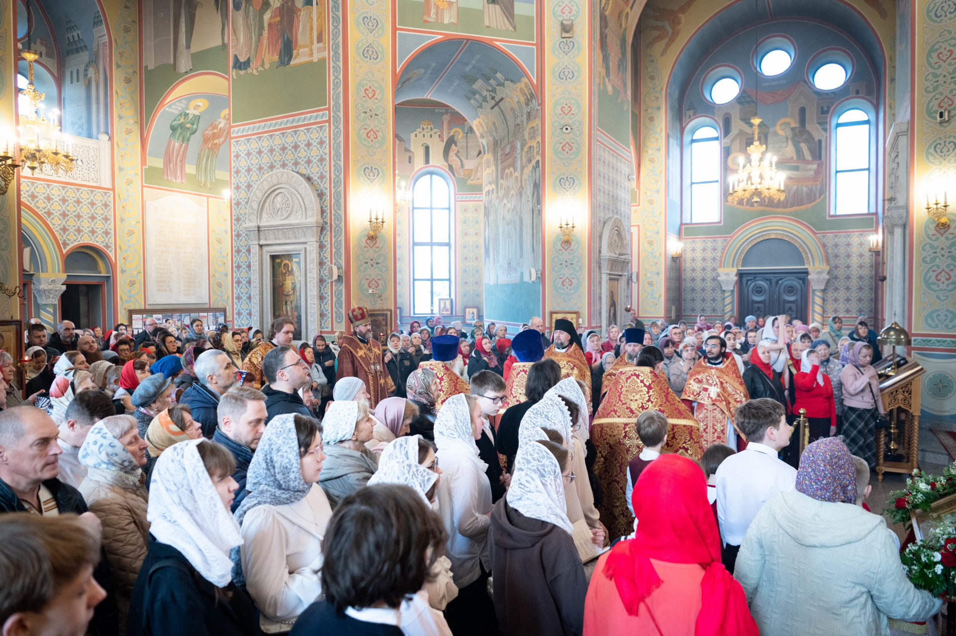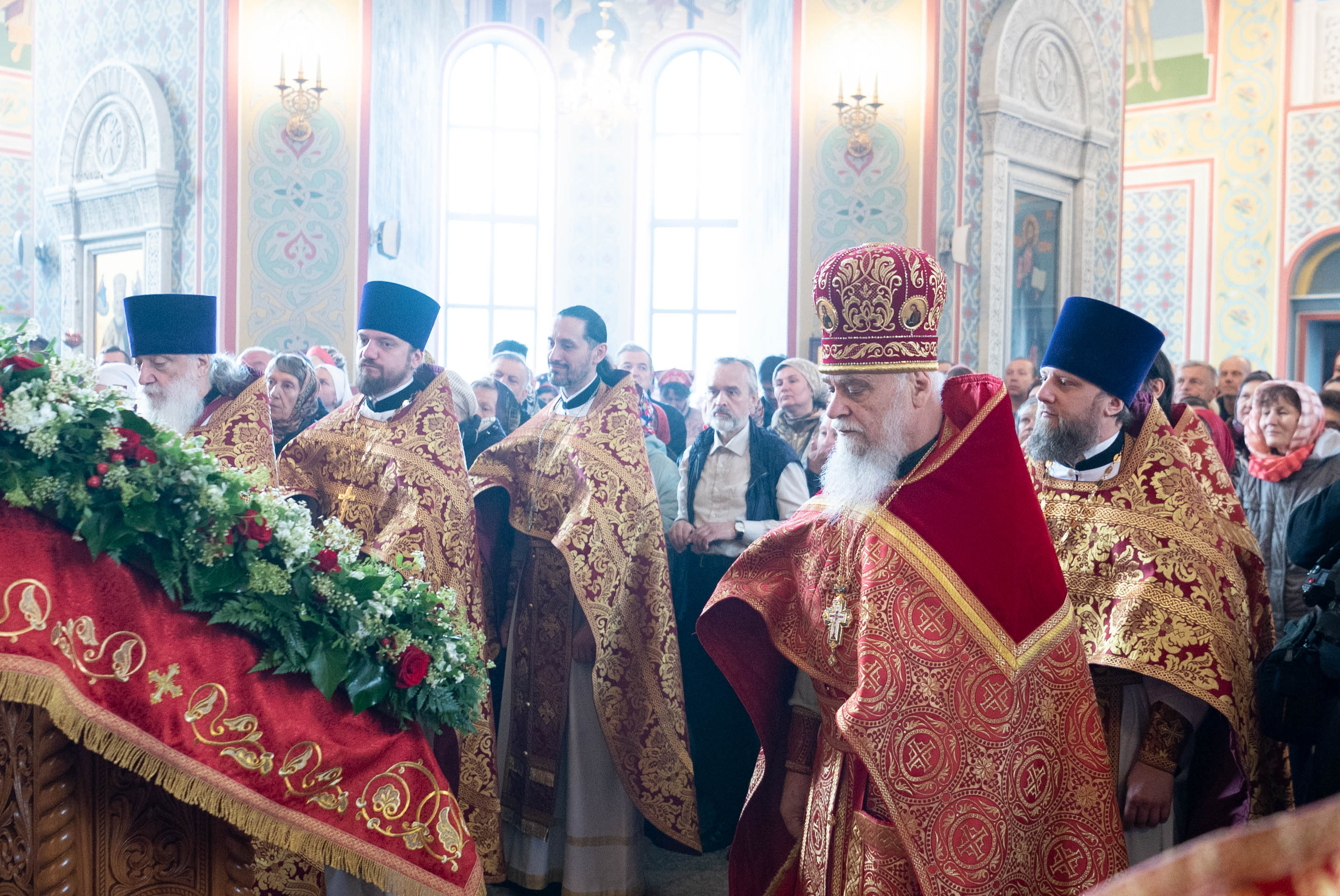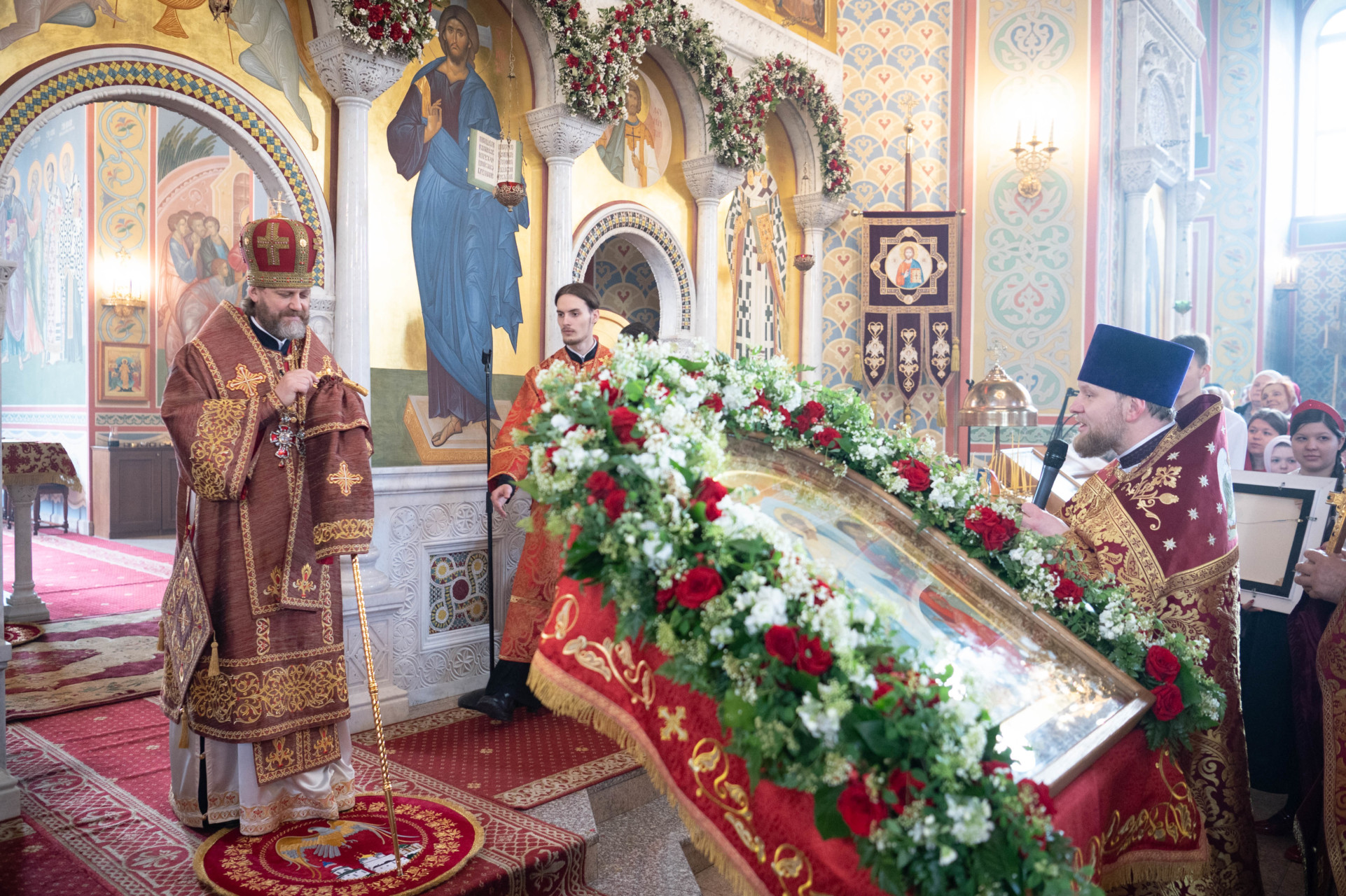 У входа в храм архиепископа Фому встречали настоятель иерей Александр Волков, а также учащиеся гимназии «Отрок Варфоломей» и церковной хоровой школы «Вертоград». Богослужебные песнопения исполнил хор «Артос» под управлением В. Волковой.