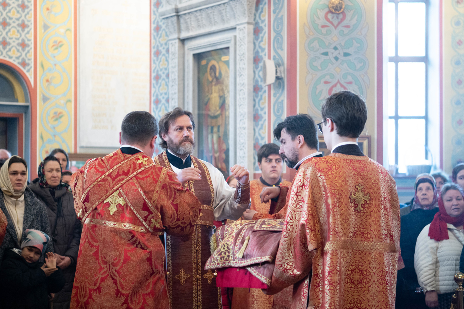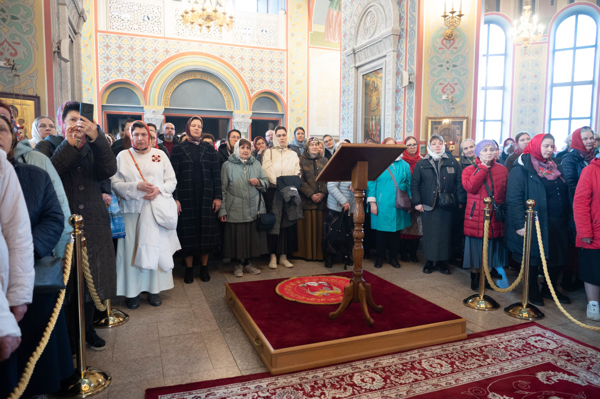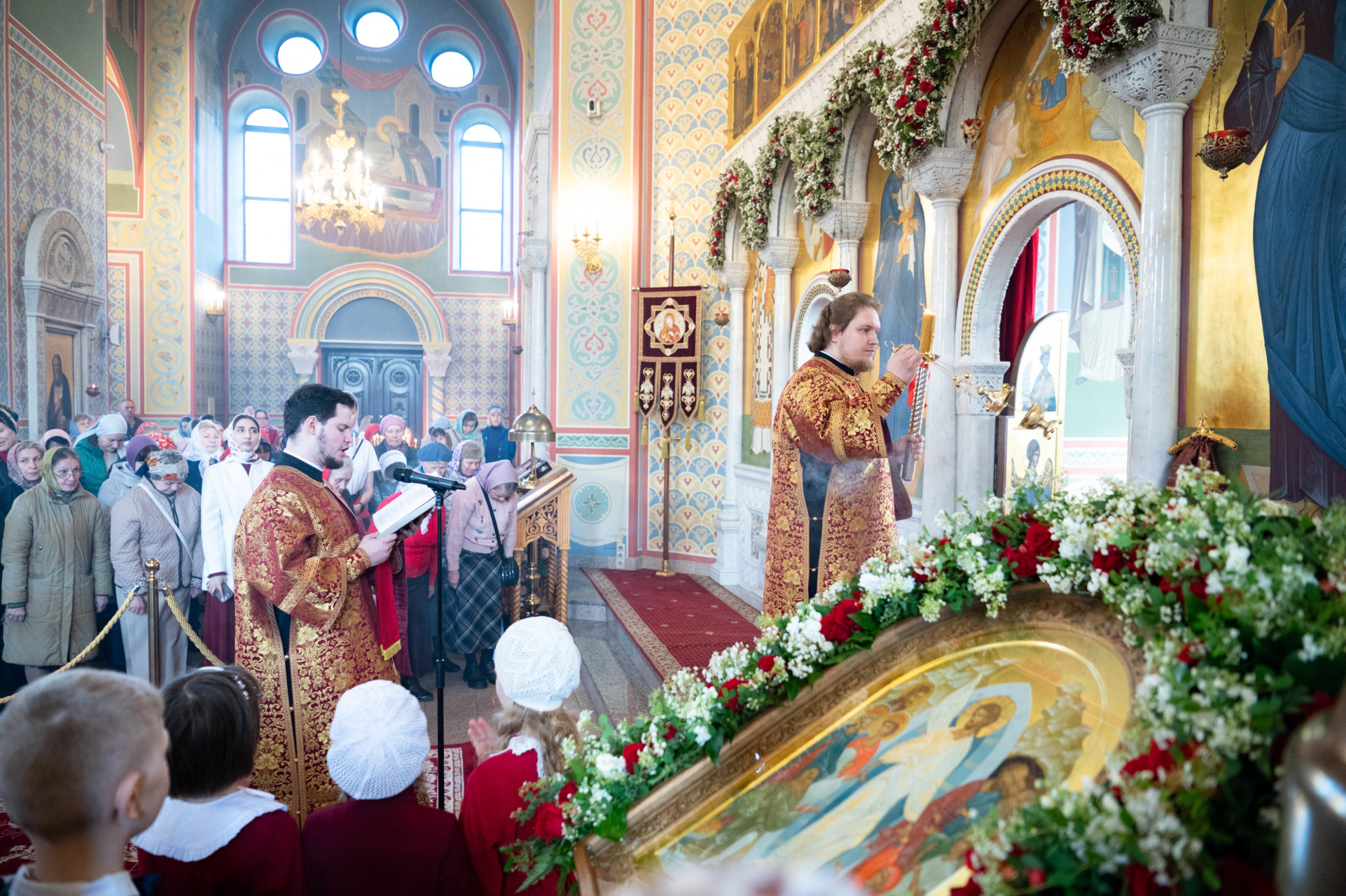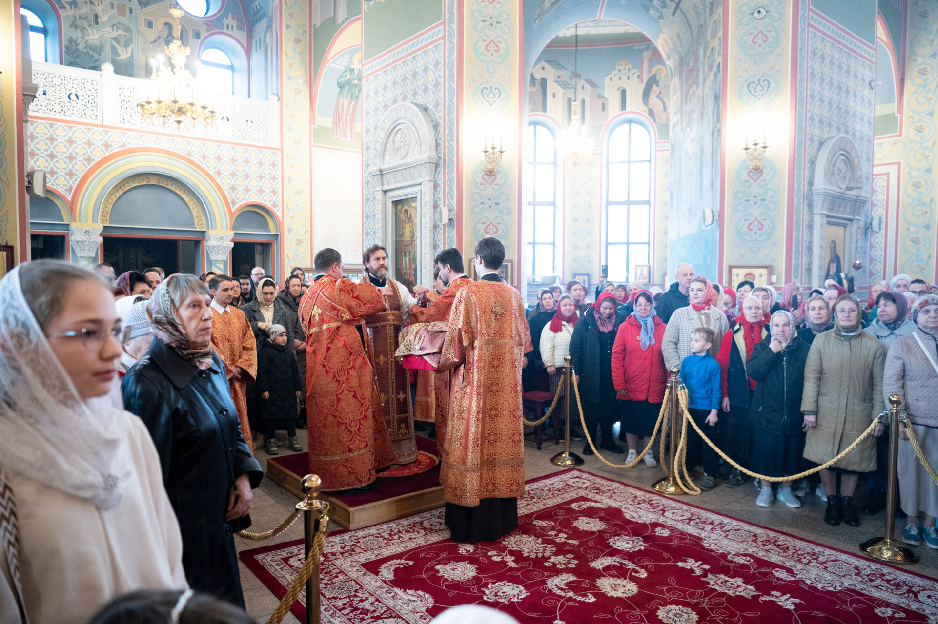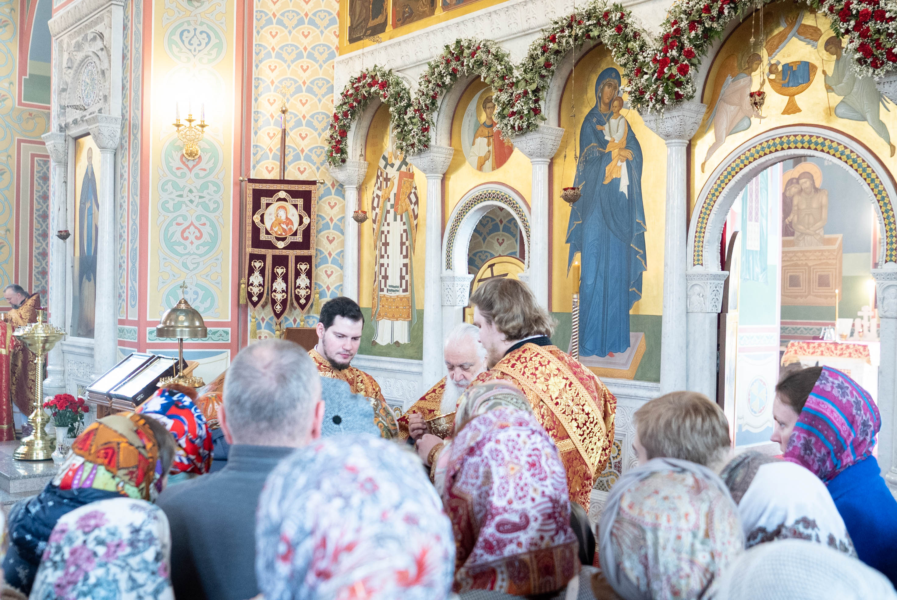 У входа в храм архиепископа Фому встречали настоятель иерей Александр Волков, а также учащиеся гимназии «Отрок Варфоломей» и церковной хоровой школы «Вертоград». Богослужебные песнопения исполнил хор «Артос» под управлением В. Волковой.