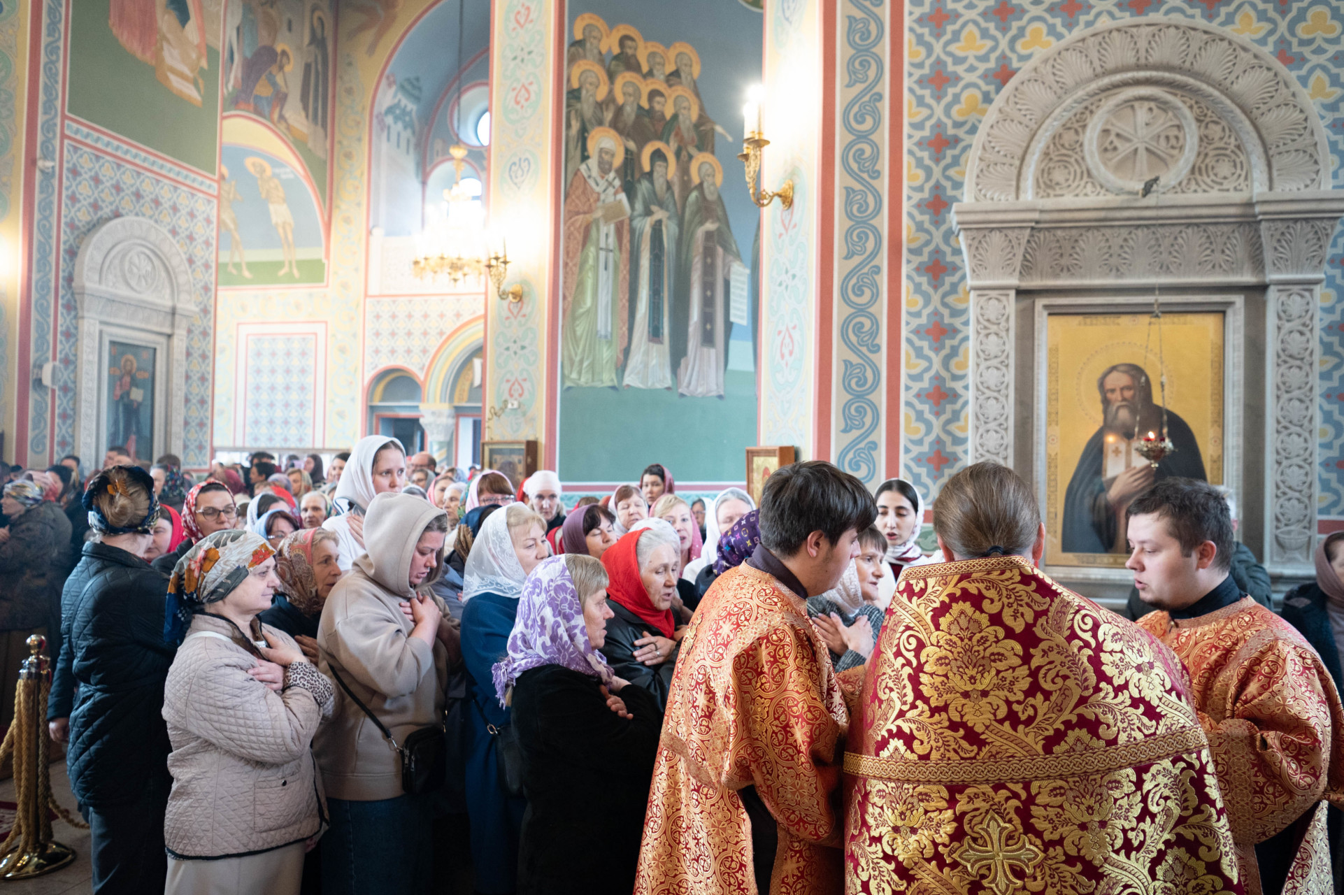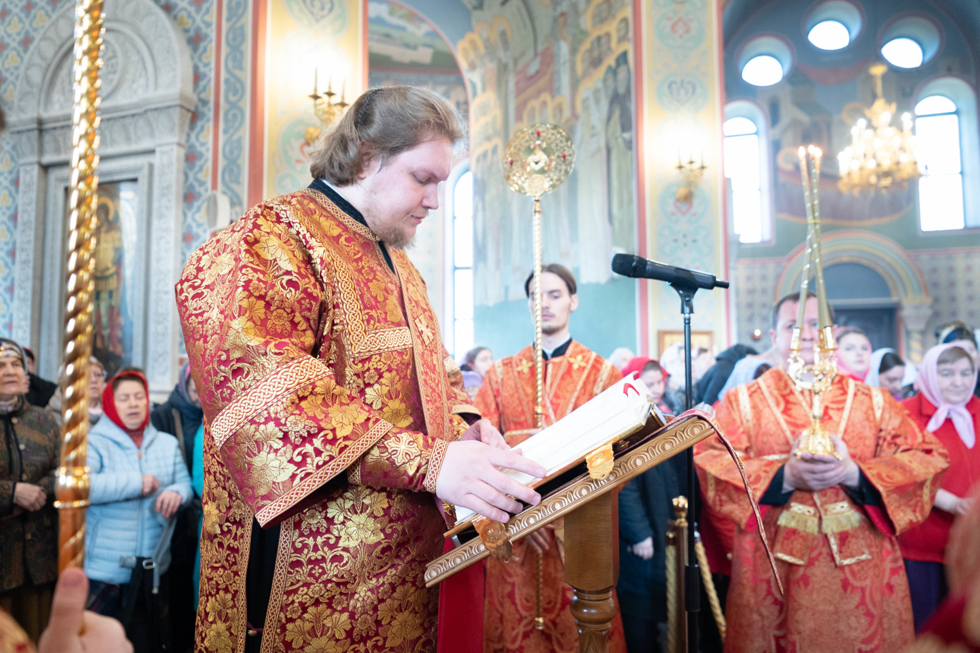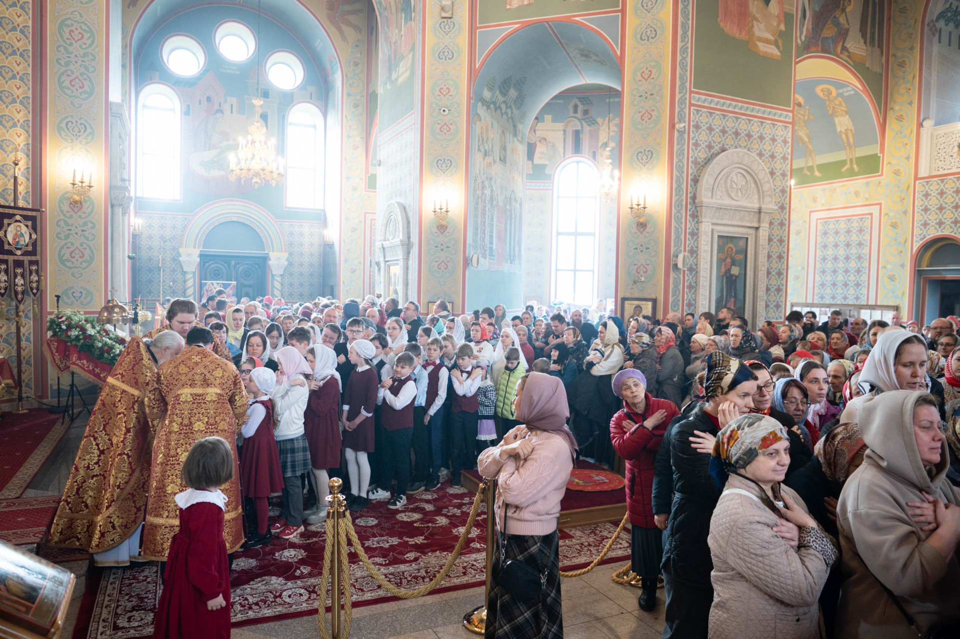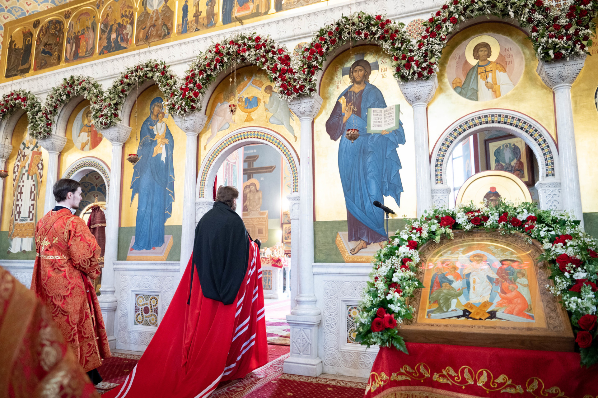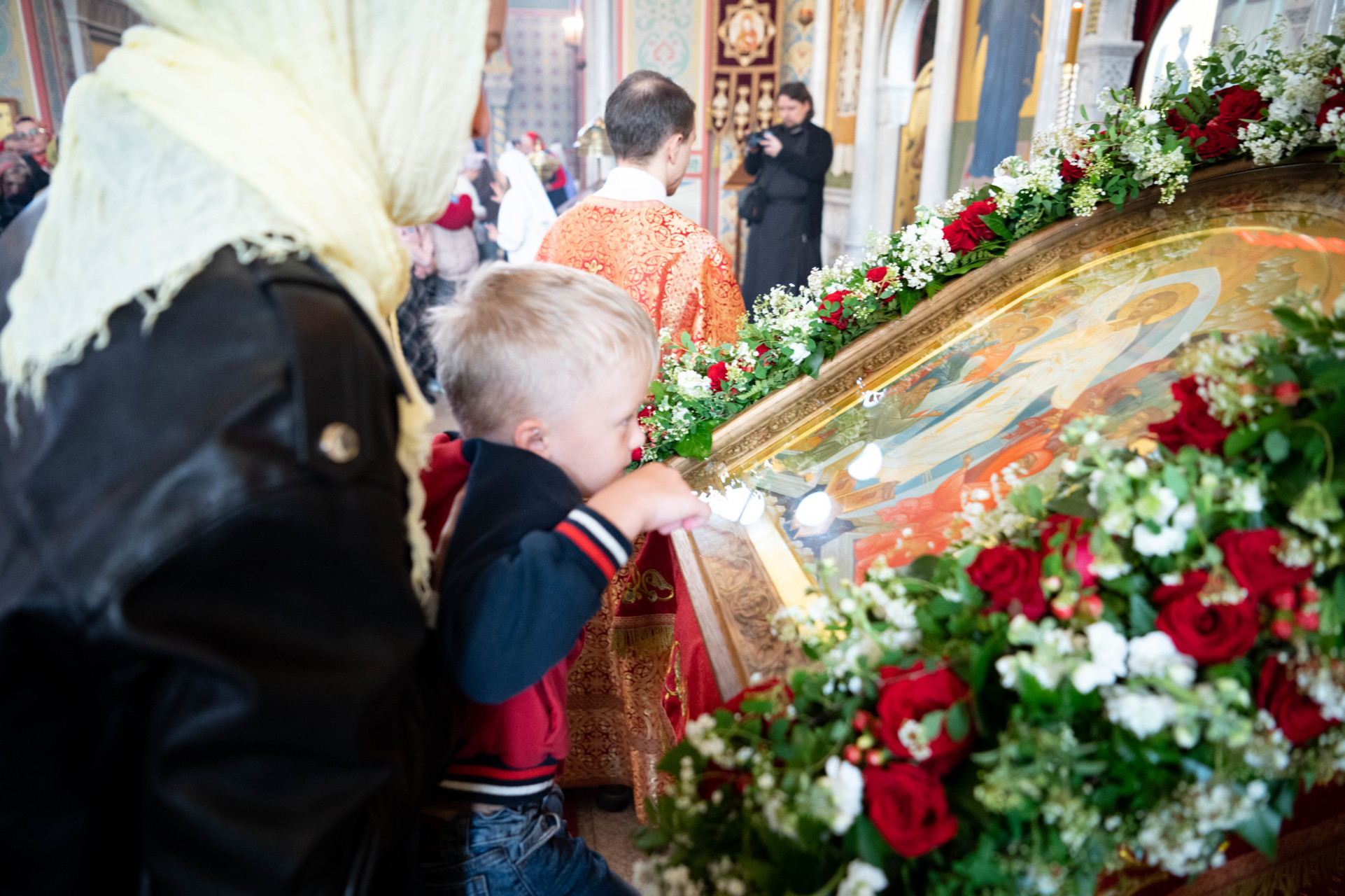 У входа в храм архиепископа Фому встречали настоятель иерей Александр Волков, а также учащиеся гимназии «Отрок Варфоломей» и церковной хоровой школы «Вертоград». Богослужебные песнопения исполнил хор «Артос» под управлением В. Волковой.