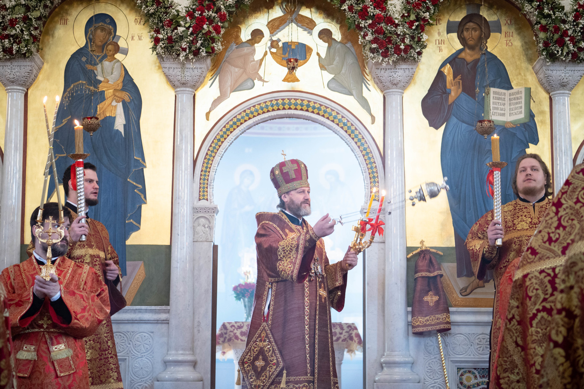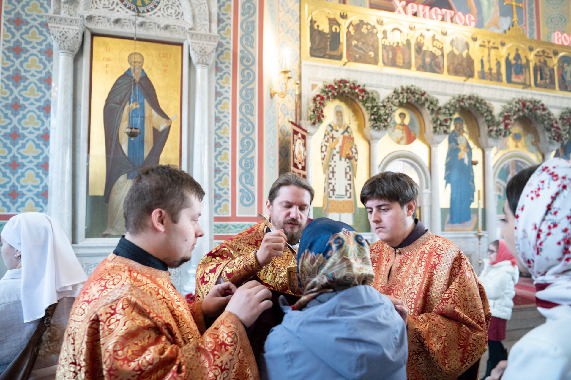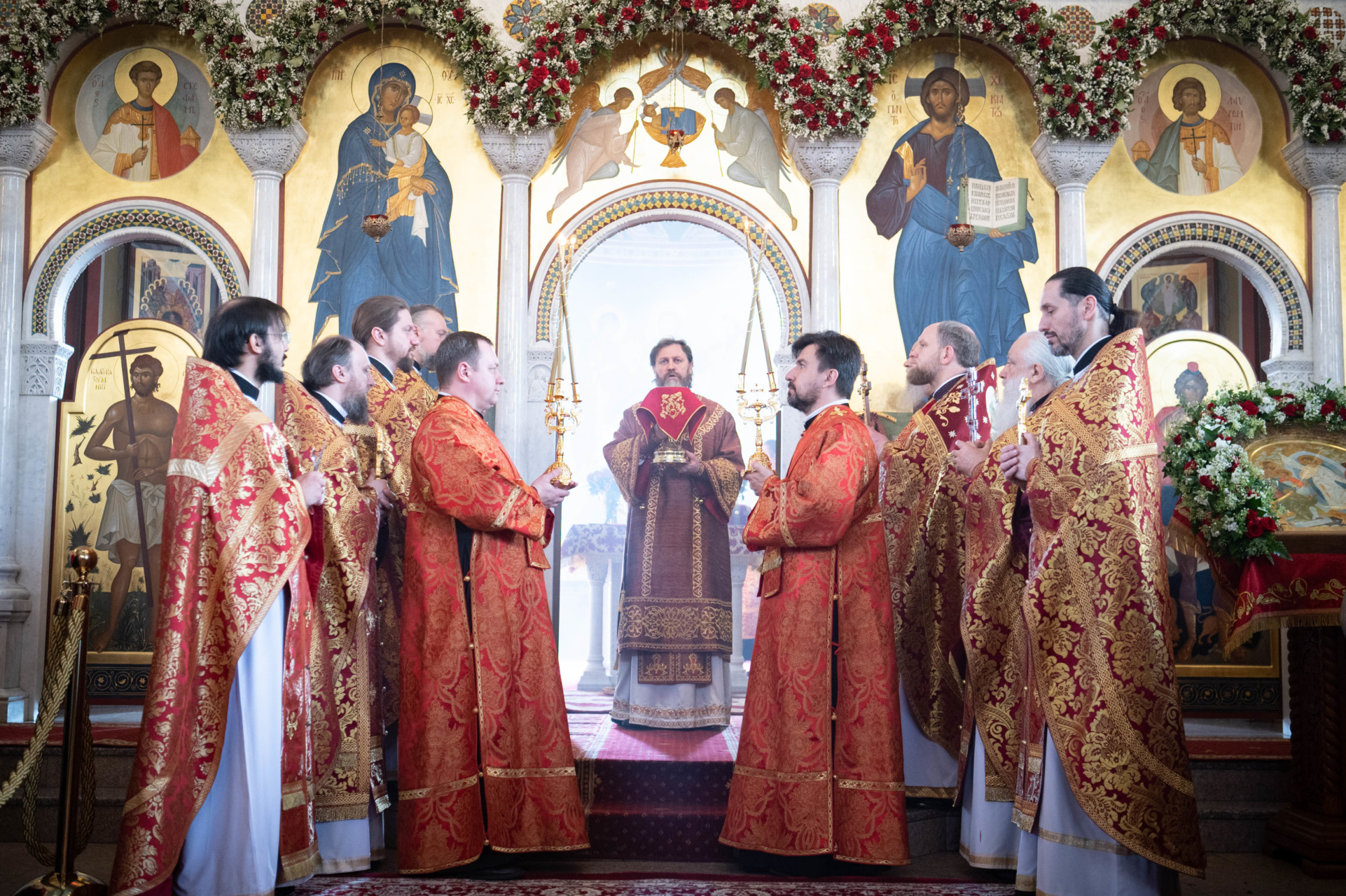 Его Высокопреосвященству сослужили: архимандрит Владимир (Зорин), настоятель храма Благовещения Пресвятой Богородицы в Федосьине; иерей Александр Волков, настоятель храма преподобного Сергия Радонежского в Солнцеве; иеромонах Александр (Серпенинов), и духовенство храма.