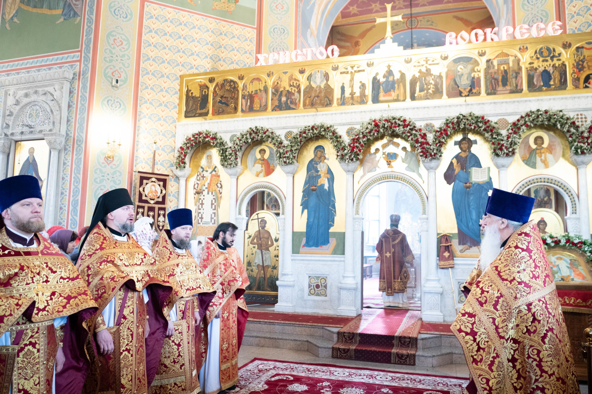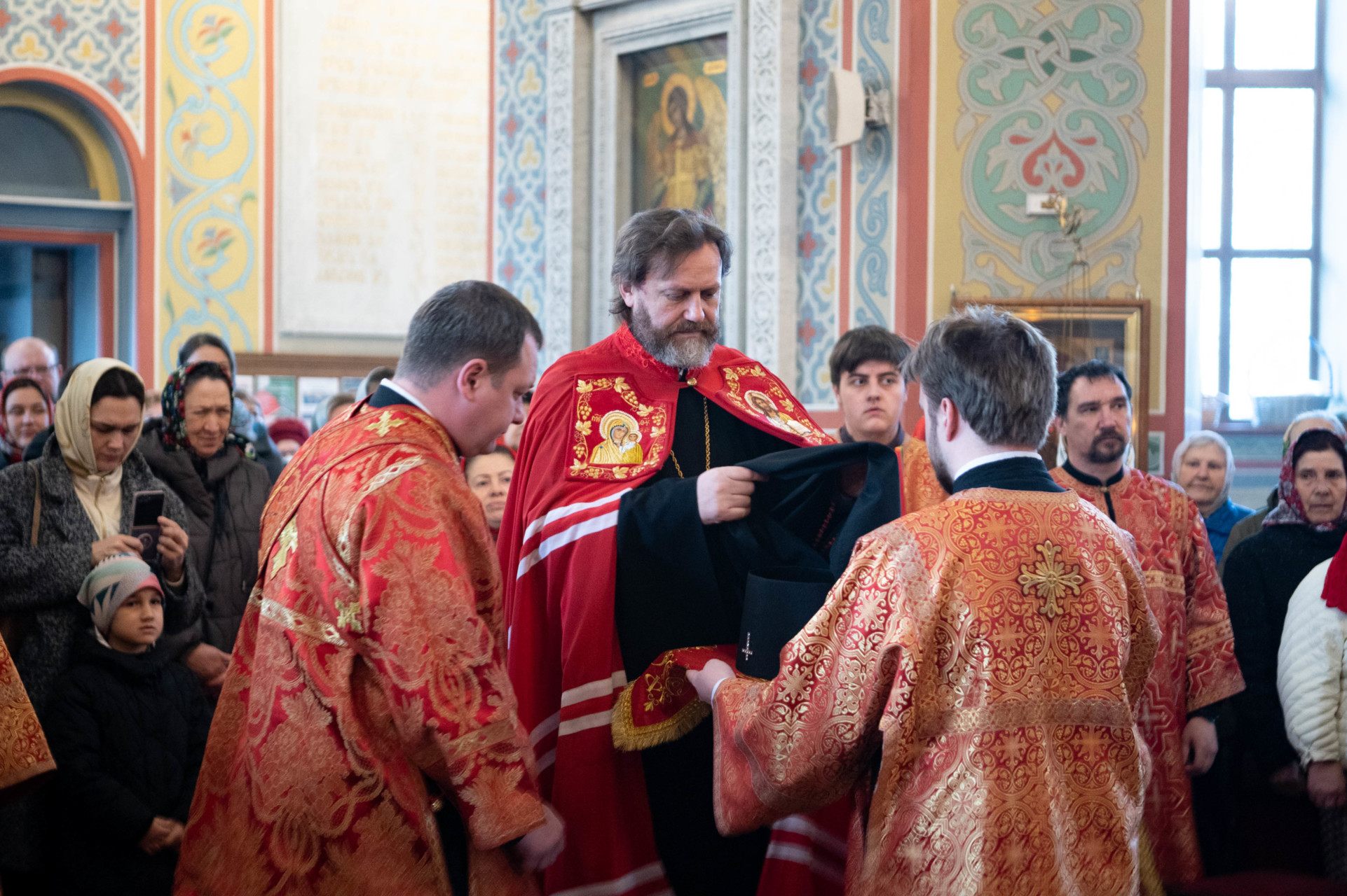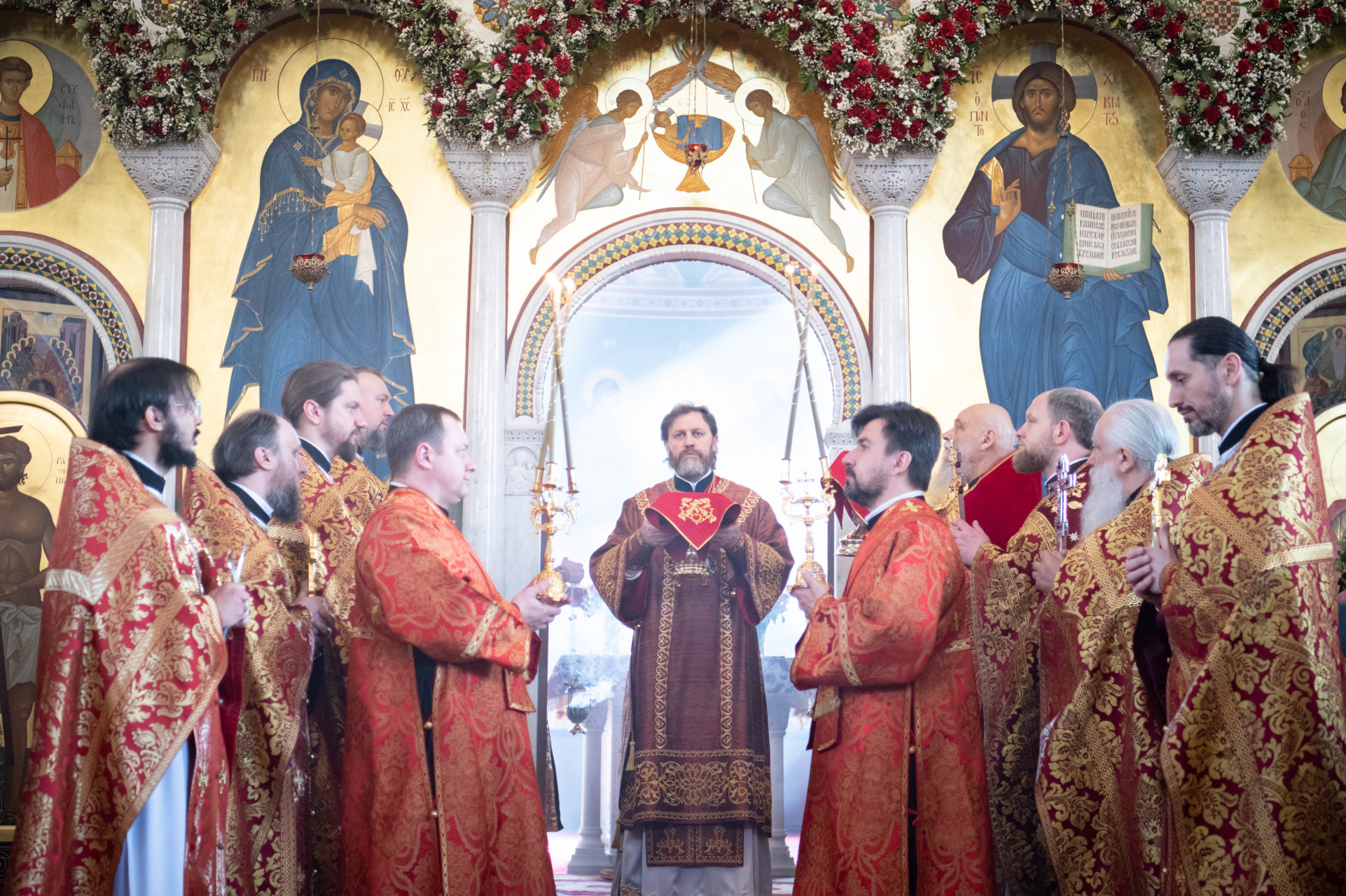 Его Высокопреосвященству сослужили: архимандрит Владимир (Зорин), настоятель храма Благовещения Пресвятой Богородицы в Федосьине; иерей Александр Волков, настоятель храма преподобного Сергия Радонежского в Солнцеве; иеромонах Александр (Серпенинов), и духовенство храма.