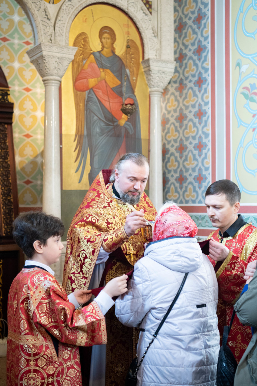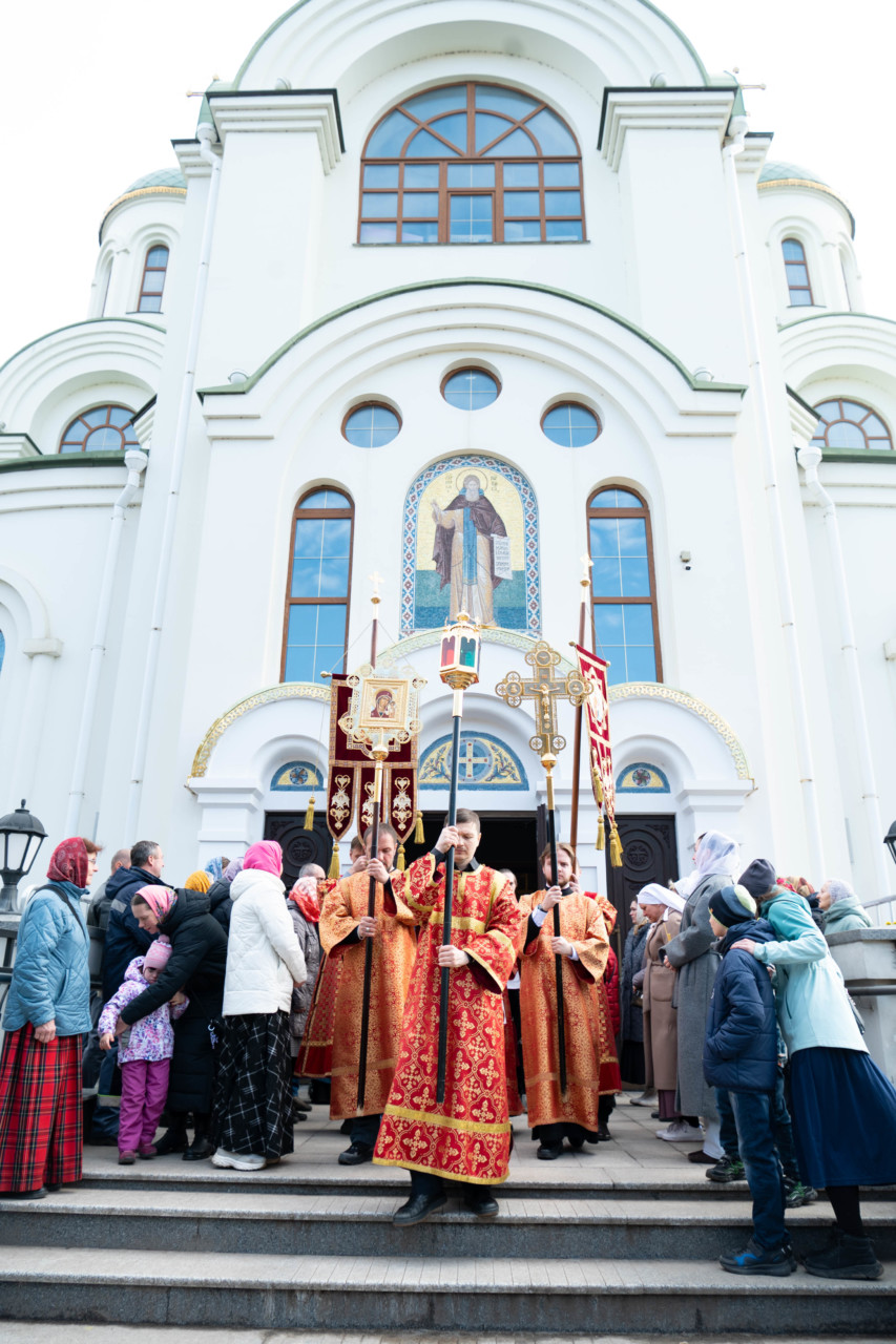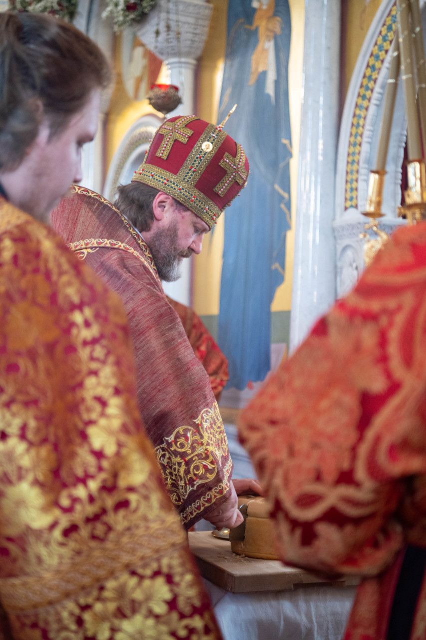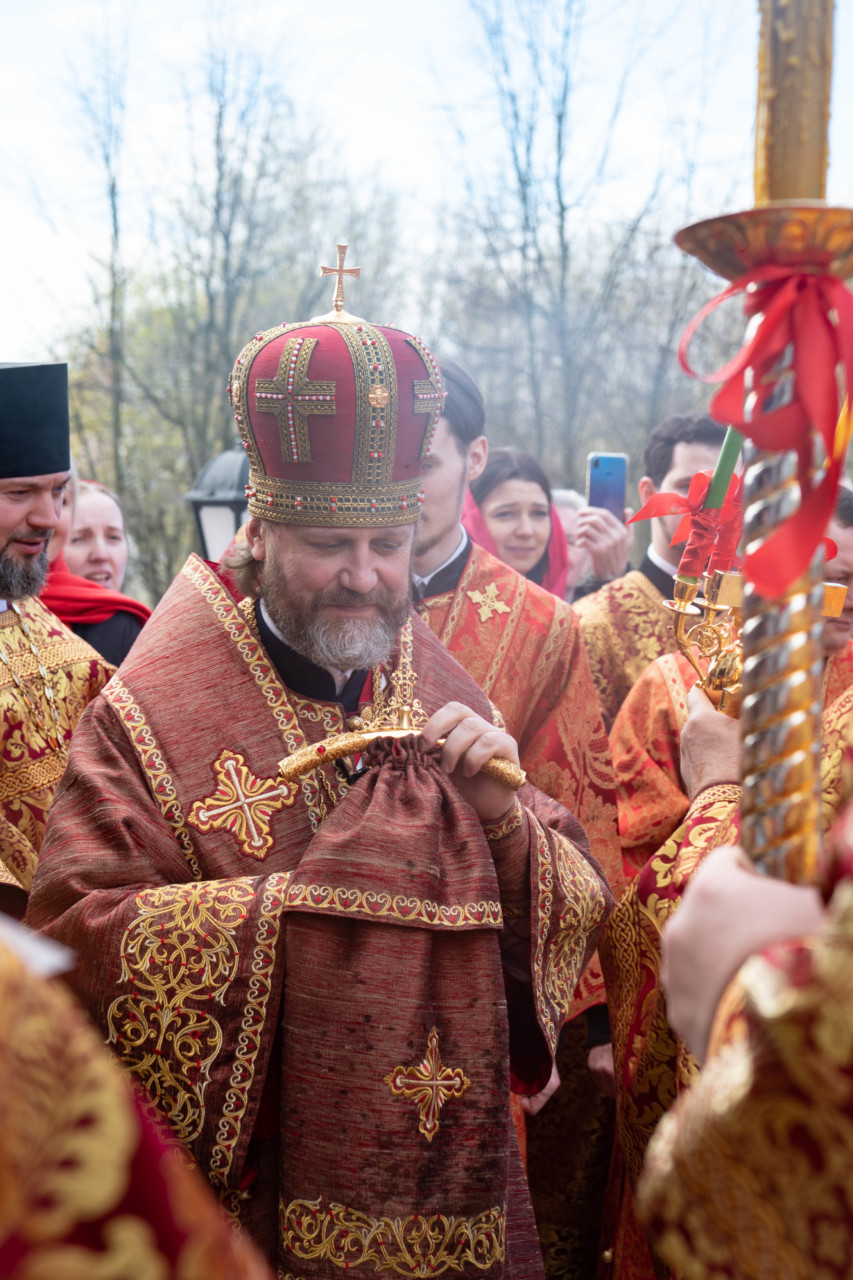 По запричастном стихе проповедь произнес клирик храма иерей Александр Ракитин. По окончании Литургии был совершен пасхальный крестный ход, после которого владыка Фома прочитал молитву на раздробление Артоса.