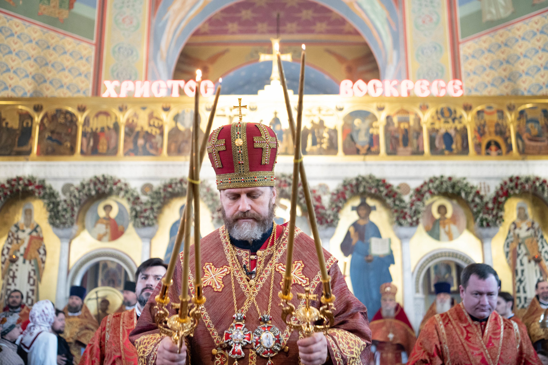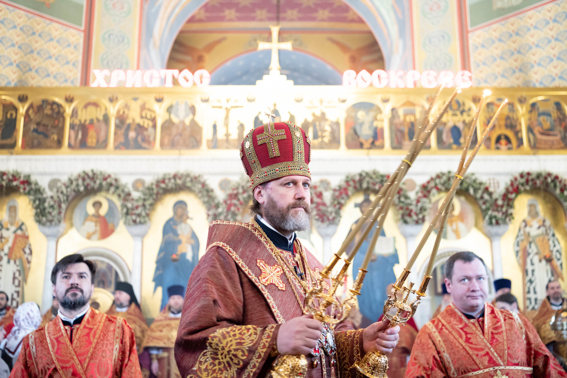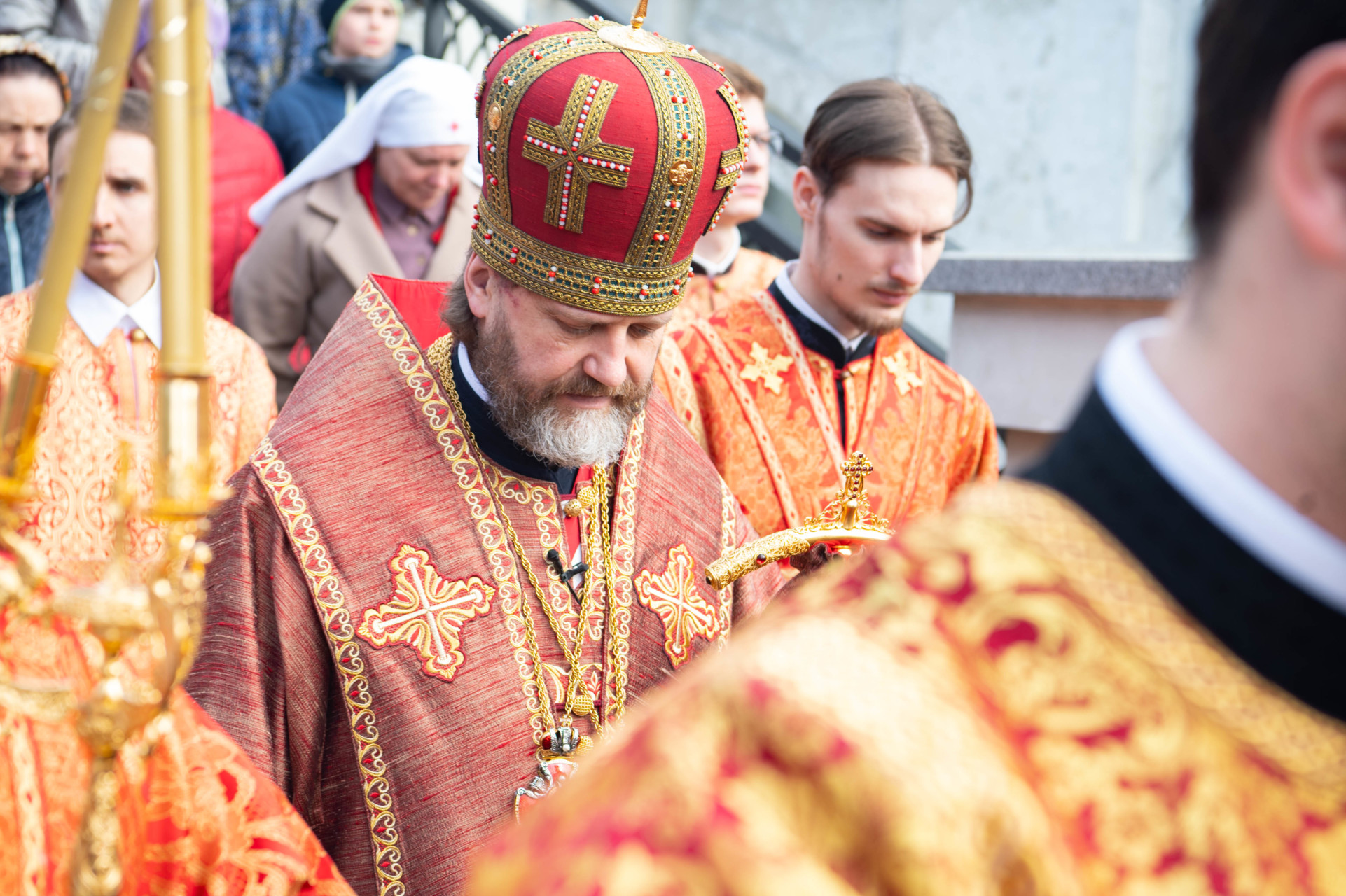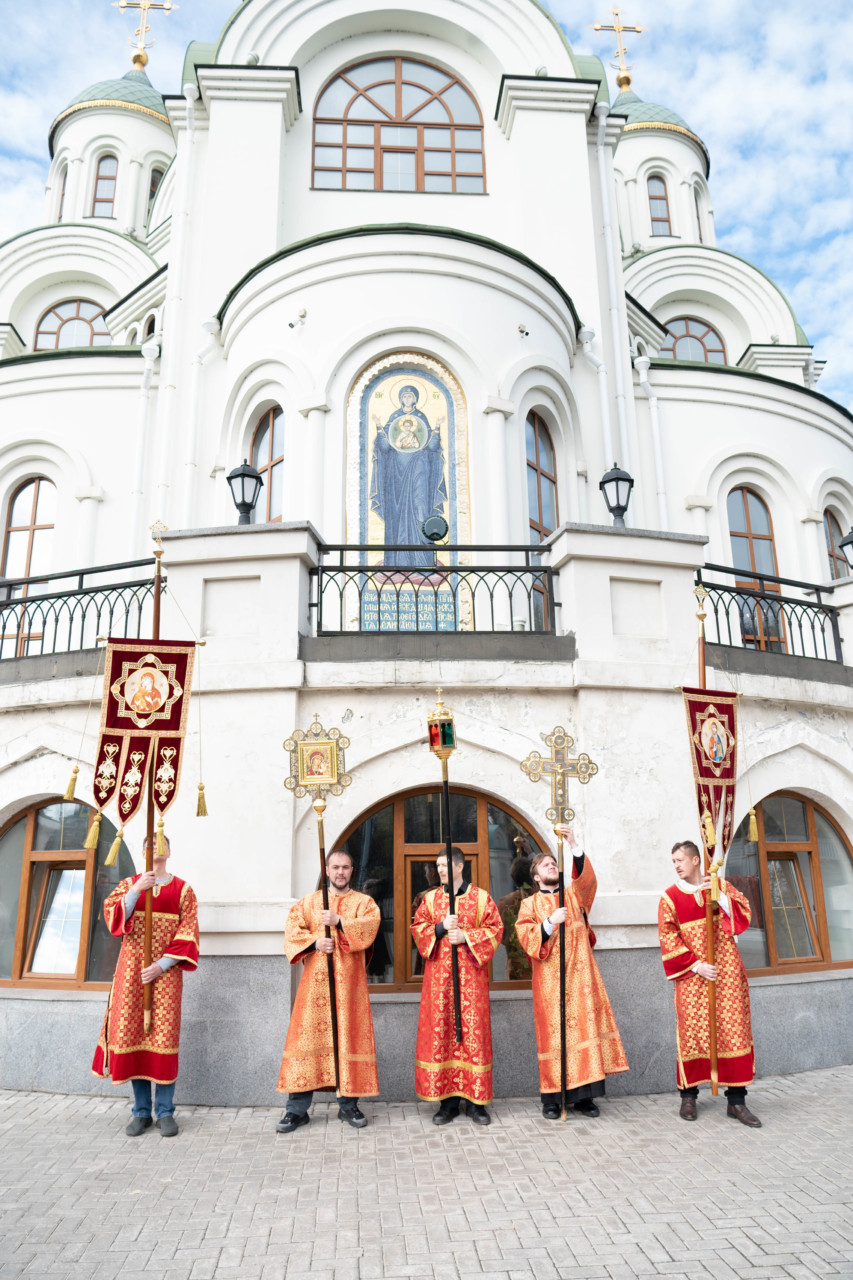По запричастном стихе проповедь произнес клирик храма иерей Александр Ракитин. По окончании Литургии был совершен пасхальный крестный ход, после которого владыка Фома прочитал молитву на раздробление Артоса.