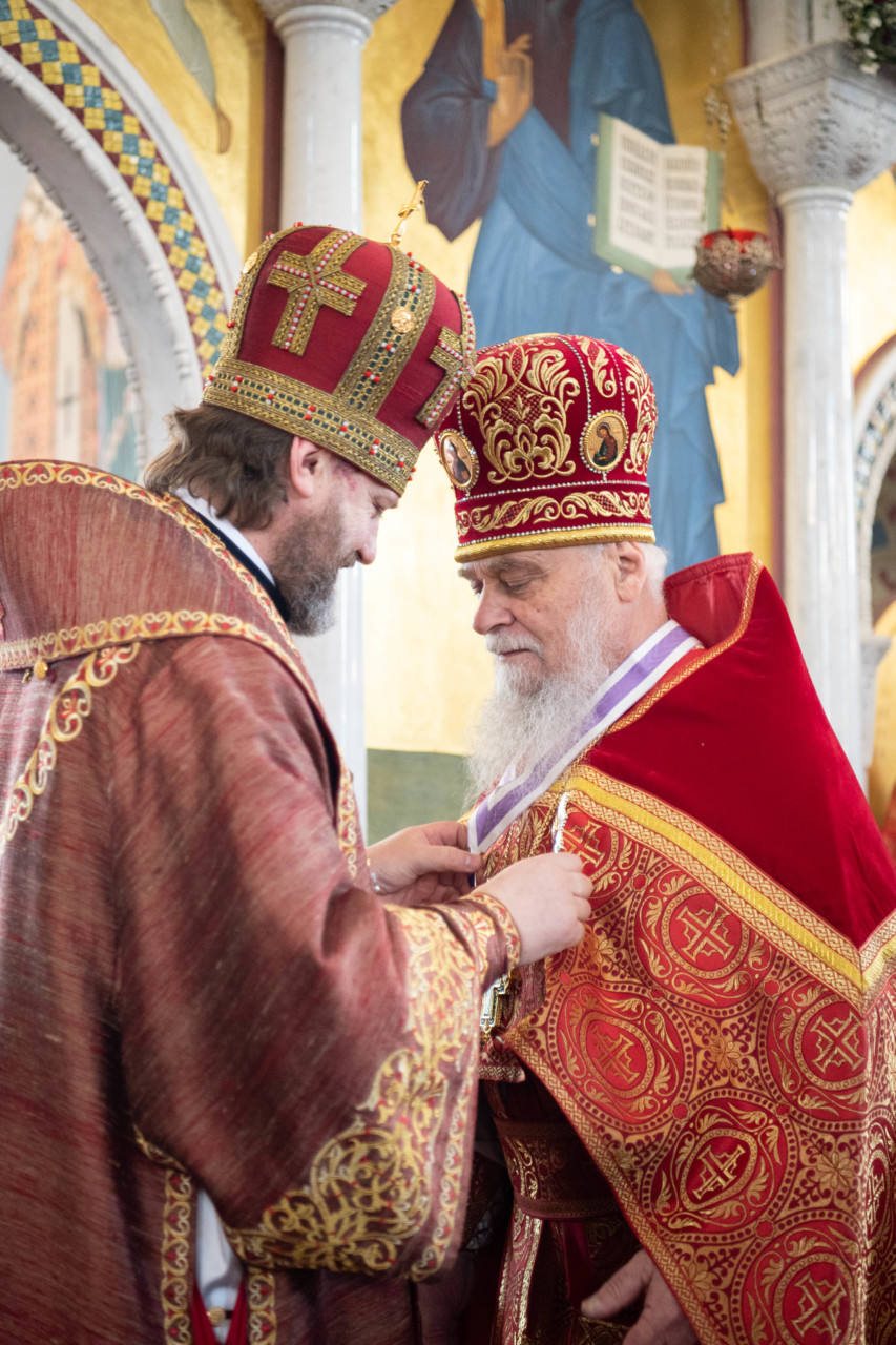 Его Высокопреосвященство обратился к молящимся с архипастырским словом и в завершение вручил архимандриту Владимиру (Зорину) орден святителя Иннокентия Иркутского II степени в связи с 75-летием со дня рождения и во внимание к трудам на благо Церкви.
