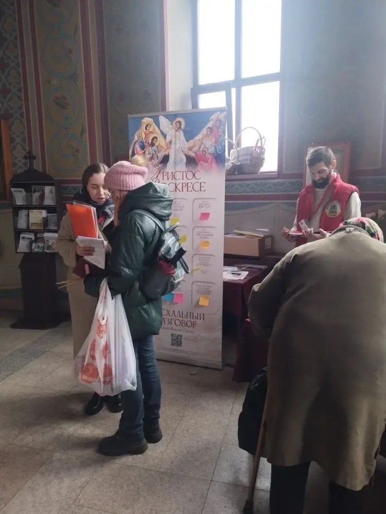 Весь день приходские консультанты общались с прихожанами и гостями храма: рассказывали о празднике Светлого Христова Воскресения, говорили о вере и разъясняли основы православия. Миссионеры раздавали просветительские буклеты всем, кто пришёл в храм в этот особенный день.