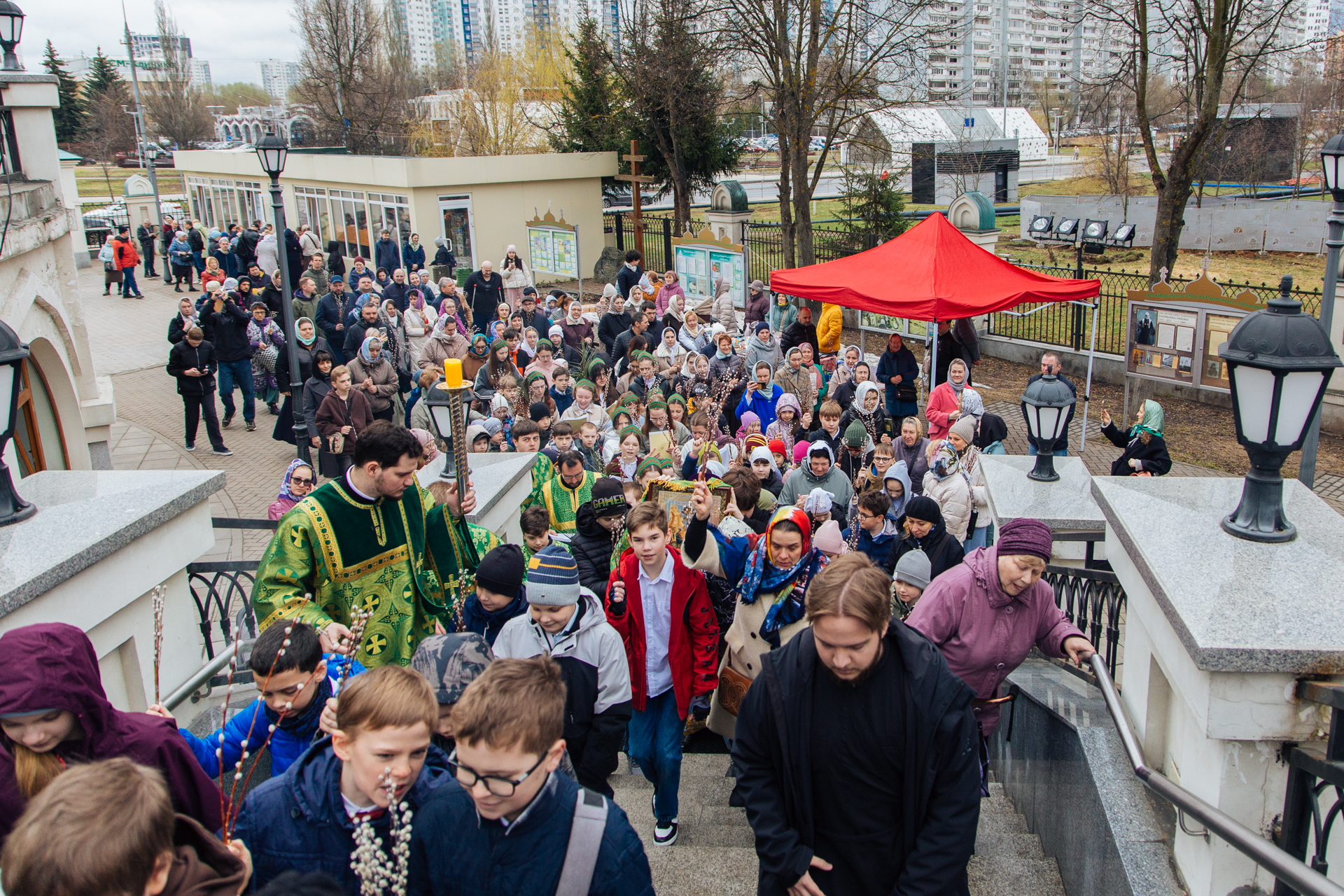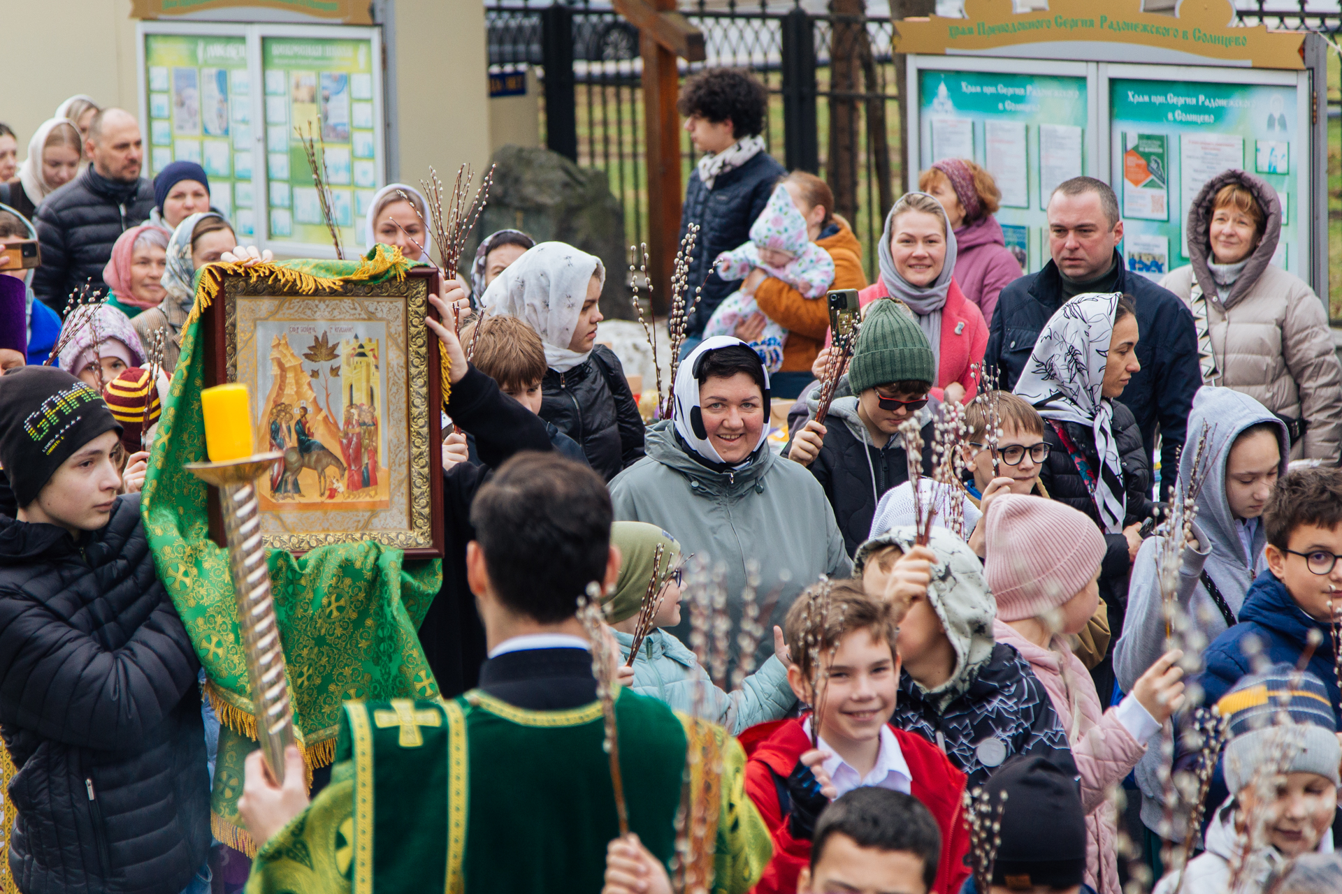 5 апреля 2026 года, в праздник Входа Господня в Иерусалим (Вербное воскресенье) в нашем храме состоялось торжественное богослужение. На поздней Божественной литургии молились многочисленные прихожане и жители района. Богослужебные песнопения исполняли хор «Артос» и детский хор приходской музыкальной школы «Вертоград».