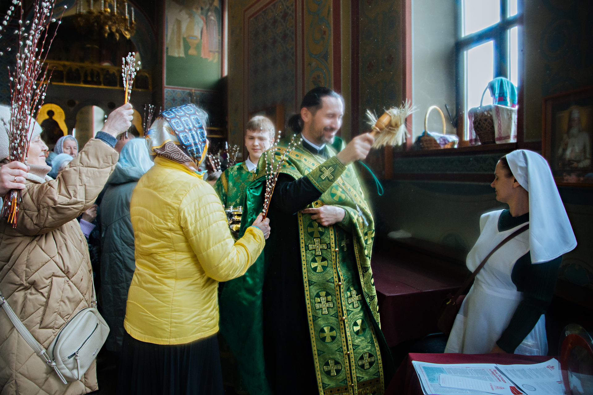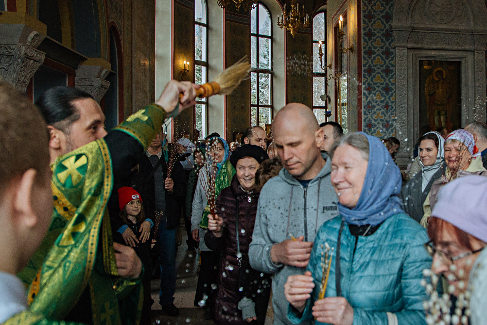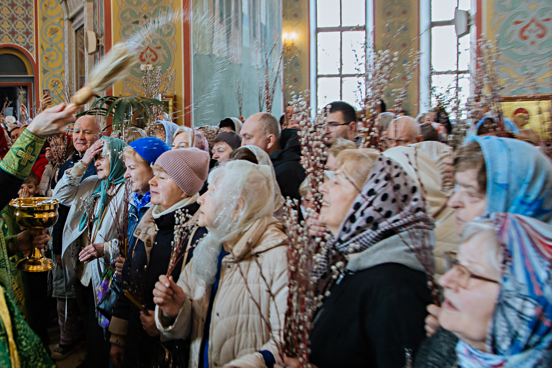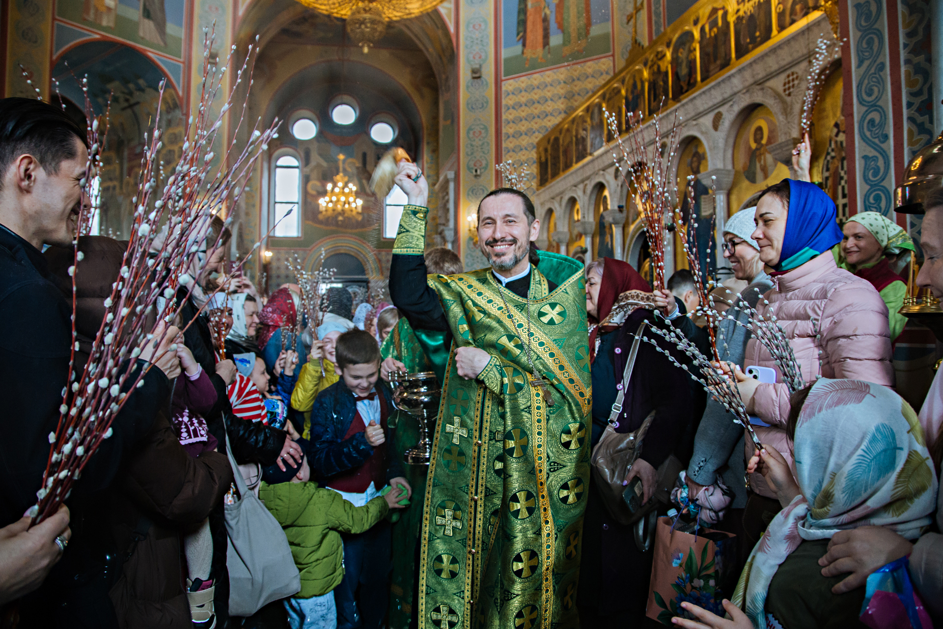 По завершении литургии было совершено славление празднику. Затем священнослужители совершили окропили святой водой вербы и пальмовые ветви, которые верующие принесли с собой на богослужение.