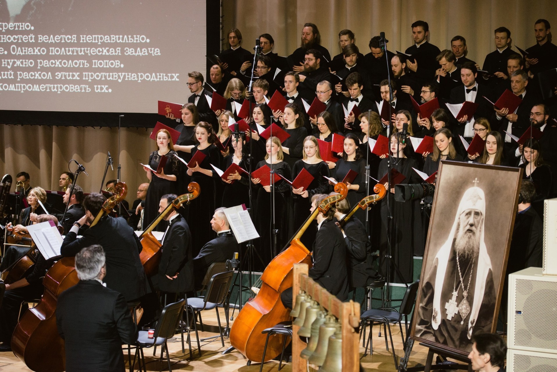 Послания Патриарха Тихона звучали в исполнении Патриаршего архидиакона Константина Баргана. Оркестр Государственной академической симфонической капеллы России, Московский Синодальный хор, коллективы Московской и Санкт-Петербургской духовных академий, хор «Артос», ансамбль «Колокола России» исполнили сочинения Модеста Мусоргского, Александра Архангельского, Сергея Рахманинова, Павла Чеснокова, Михаила Котельникова, Николая Римского-Корсакова и др.