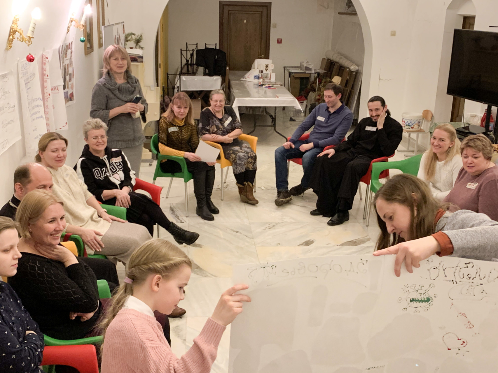 Первые занятия начались еще в январе 2021 г., проходили ежемесячно на базе нашего храма. Как всегда, огромный интерес для детей вызывали формы работы —  психологическая игра, дискуссия, коллажи и рисунки, диалоги. Диалоги были тем более интересны, что можно было обсудить темы в паре взрослый + подросток, в психологически безопасном пространстве. Правила работы в группе изначально определяли доброе, внимательное отношение к партнеру – отсутствие критики, безоценочное высказывание своего мнения, не отвергая мнения другого человека. Обстановка работы учила ответственному отношению к работе в группе и самодисциплине. Одним из самых сложновыполнимых правил для ребят оказался запрет на использование мобильного  телефона во время занятий.